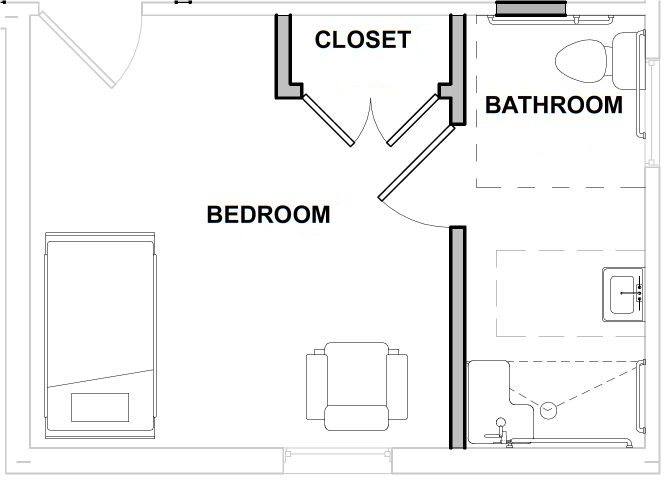 Our rooms at Havenwood Homes offer spacious living with a bedroom, private bathroom bathroom, and a closet for ample storage space. All rooms feature easy-transition flooring, ADA-compliant showers with grab bars, and other safety features to promote independent living for our senior residents. We provide all necessary furnishings, but residents are also welcome to bring their own personal belongings to make your space feel like home.